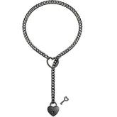 Adjustable Heart O-Ring Punk Rock Cuban Chain Necklace – Lariat Y-Style Necklace with Key & Heart Lock Pendant